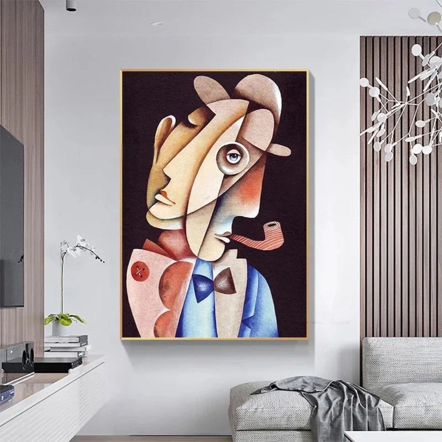 Classic abstraction meets Nordic sophistication. Picasso Nordic Elegance – Abstract Smoker Canvas Art is a captivating hand-painted artwork inspired by Picasso’s timeless cubist style. The painting portrays a reflective figure with a pipe, rendered in geometric forms and subtle earth tones that evoke depth, emotion, and refinement. Every brushstroke carries a sense of intellect and artistry, making this piece a perfect blend of modern minimalism and vintage expression.