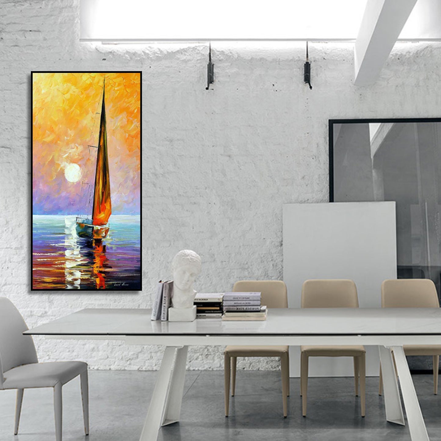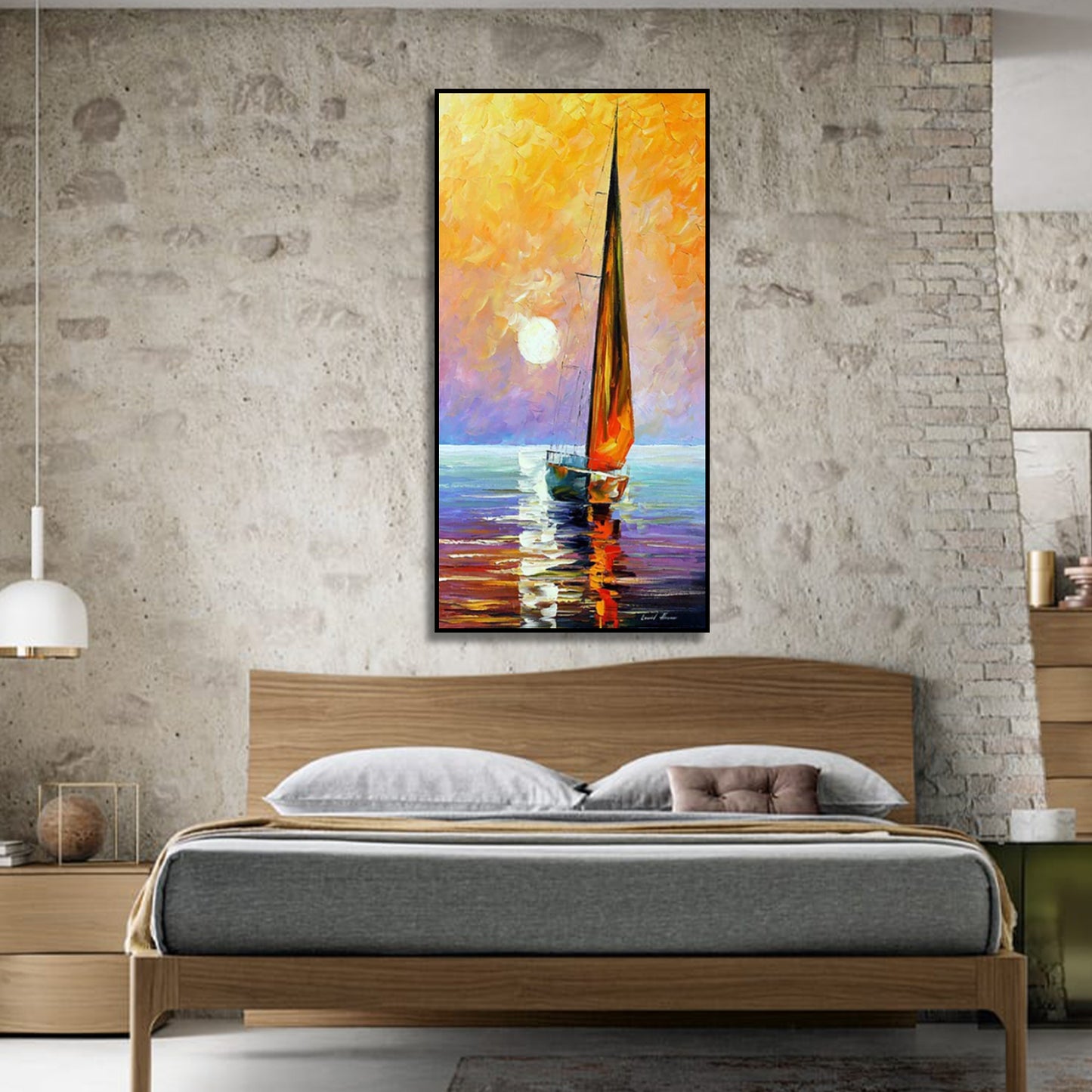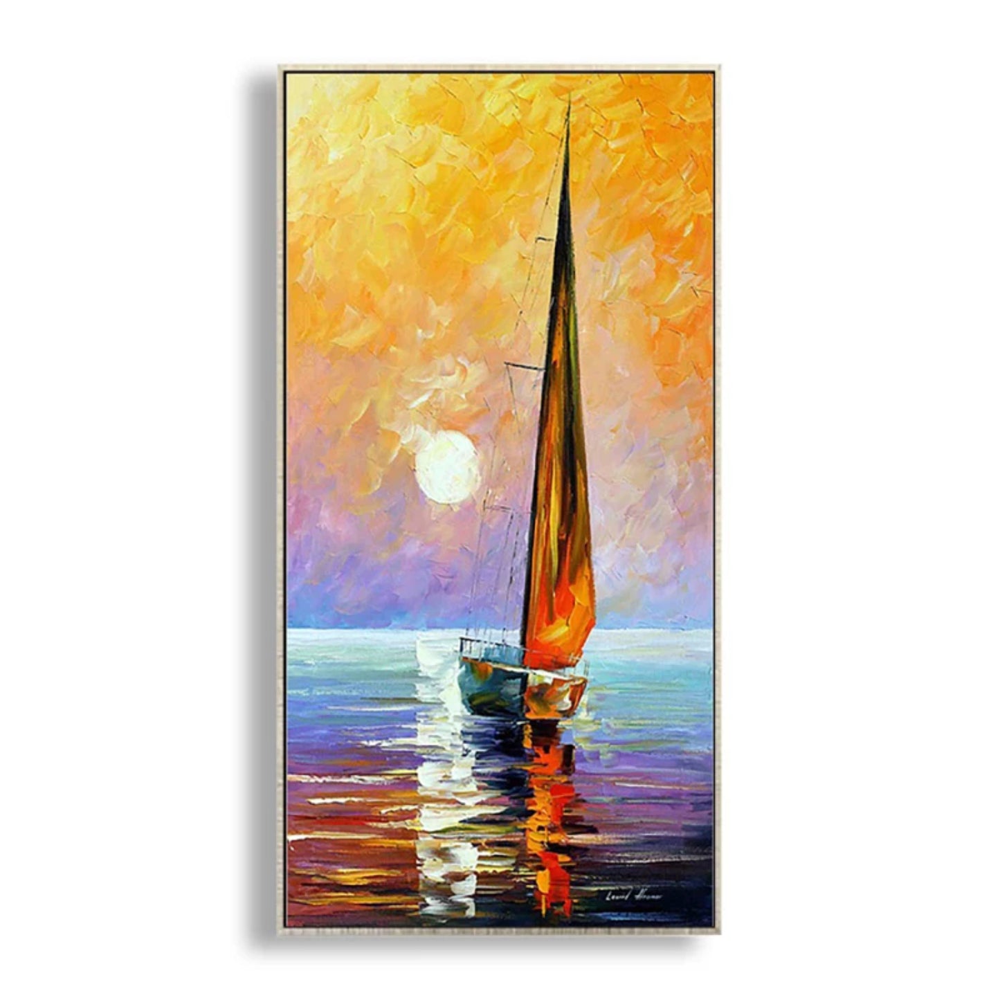 Vibrant Sailboat Sunset Seascape Impression Wall Painting