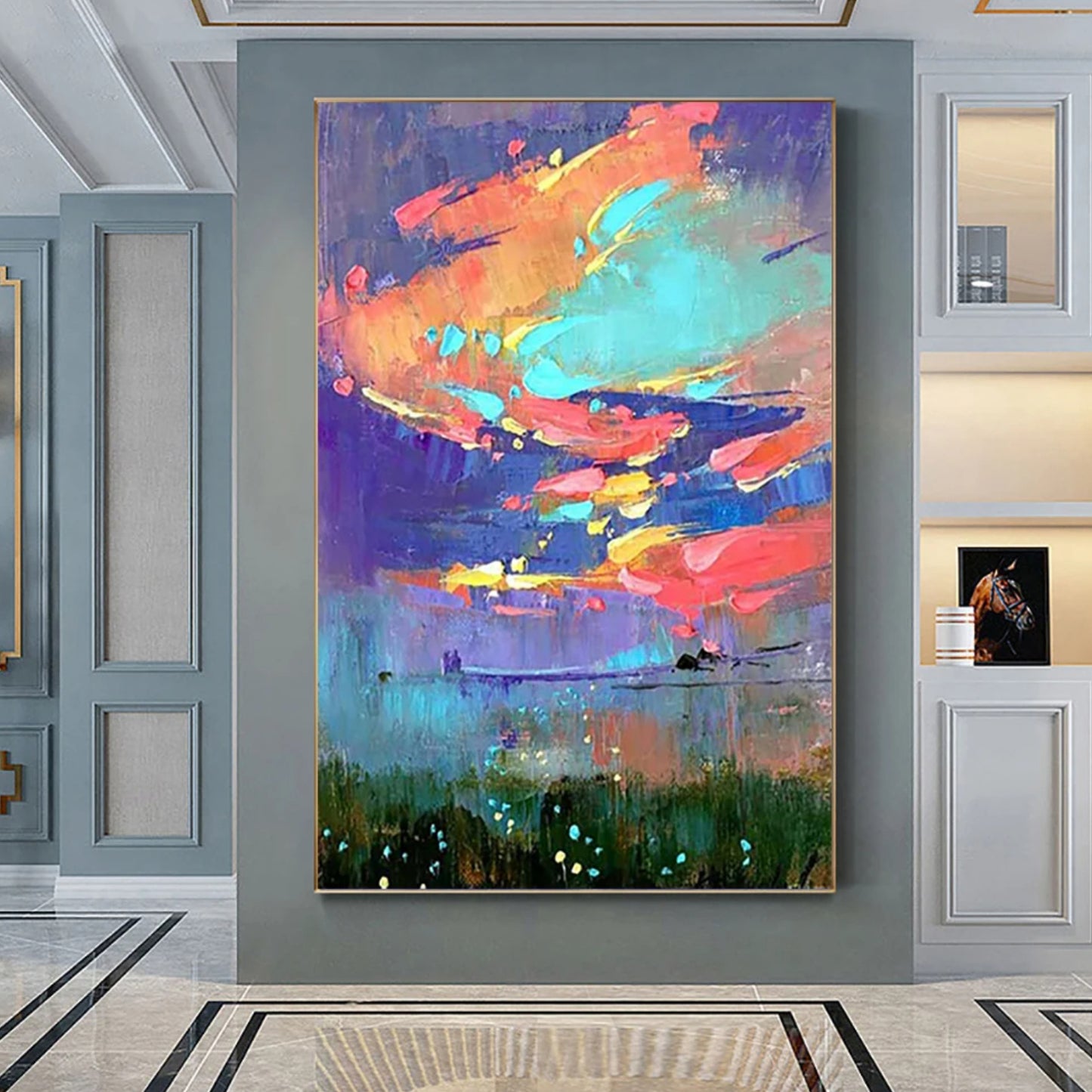 Introducing our captivating "Vivid Dreamy Sky with Colourful Clouds Modern Painting" - a mesmerising depiction of boundless imagination and vibrant beauty. This stunning piece invites you to immerse yourself in a dreamscape of vivid skies adorned with a kaleidoscope of colourful clouds. Whether adorning the walls of a living room, bedroom, or study, it transforms any room into a sanctuary of artistic expression.