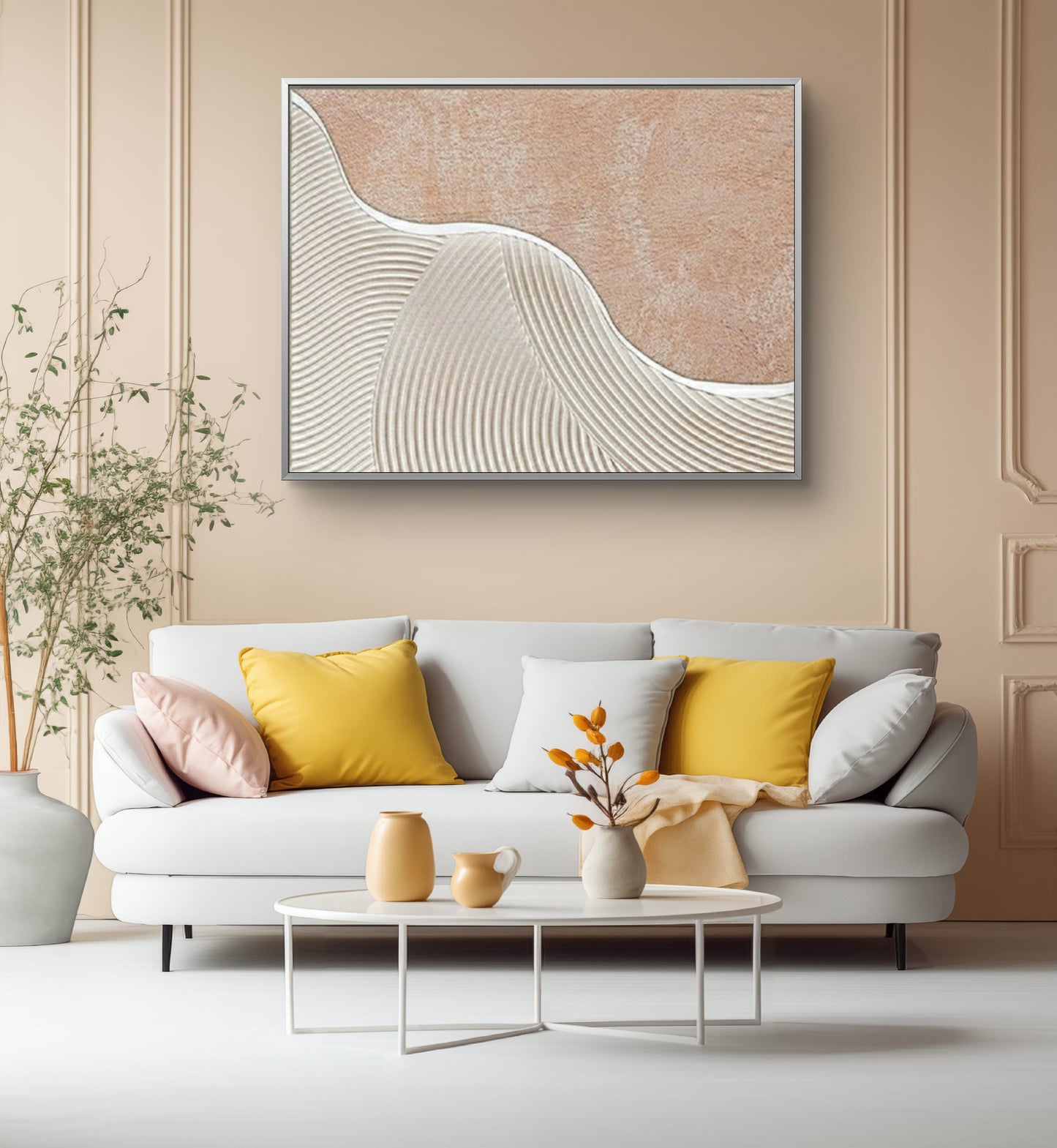 Soft white waves, sculpted by hand in serene Wabi-Sabi harmony. This luxury 3D textured artwork brings together calming white tones, concrete-style minimalism, and organic movement inspired by Japanese simplicity. Each brushstroke and raised texture is applied by hand, forming gentle flowing waves that add depth, calm, and modern sophistication to any space. Perfect for clean, minimalist, Japandi, Scandinavian, or neutral interiors.