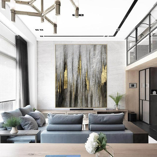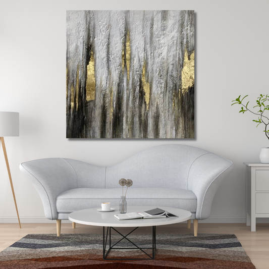 Gold & Grey Textured Abstract Wall Art – Hand-Painted Canvas with Metallic Accents