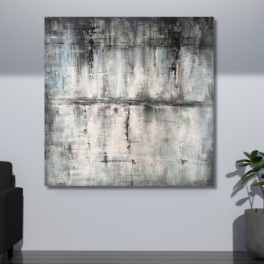 Neutral Textured Abstract Wall Art – Hand-Painted Grey, Black & White Canvas