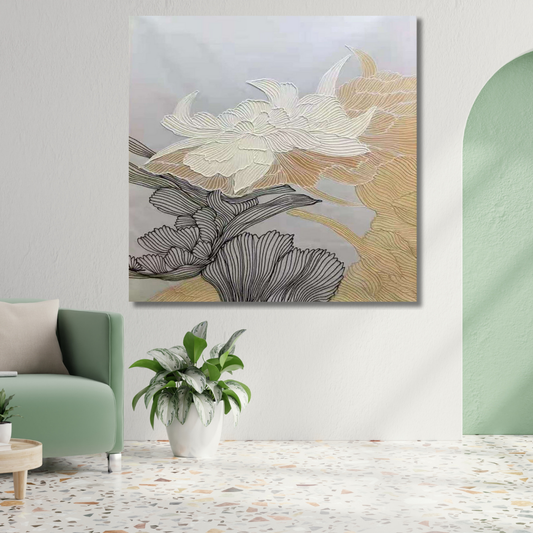 Whispering Petals – 3D Beige Floral Wall Art with Sculpted Texture
