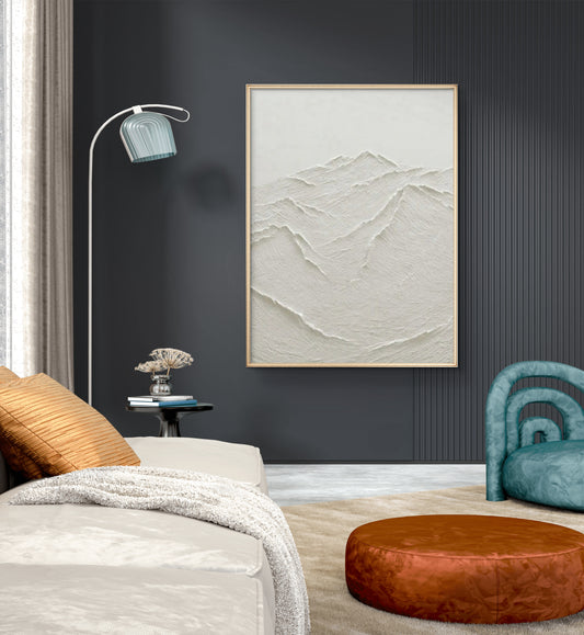 3D White Textured Mountain Ranges Abstract Living Room Oil Painting
