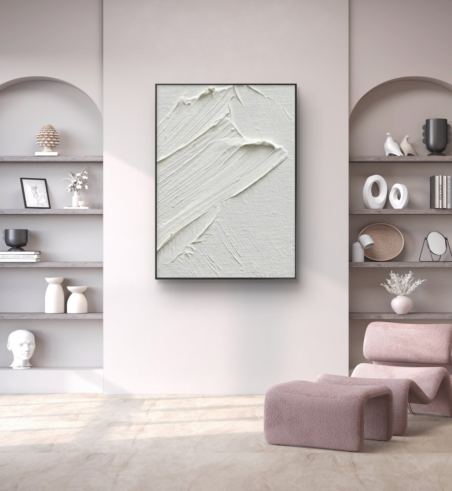 È una splendida opera d'arte che porta un tocco di eleganza moderna a qualsiasi spazio abitativo. La texture 3D aggiunge profondità e dimensione, rendendolo un punto focale accattivante nella tua stanza. Il design minimalista presenta una texture bianca che emana un senso di tranquillità e raffinatezza. Questo dipinto ad olio è realizzato su tela, garantendo resistenza e una finitura di alta qualità. È perfetto per coloro che apprezzano la bellezza della semplicità nell'arte e cercano di creare un ambiente sereno ed elegante nel proprio soggiorno.
