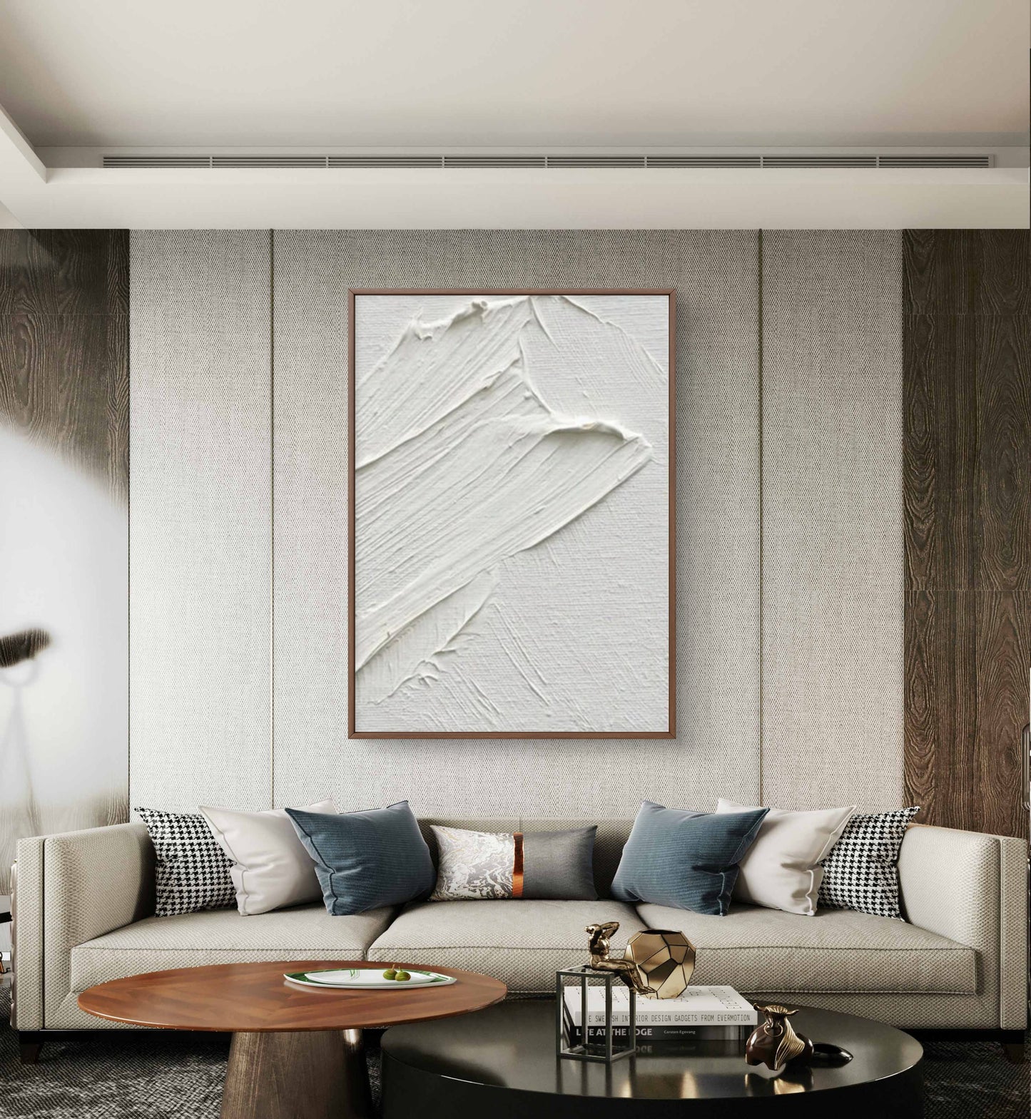 Pittura minimalista della decorazione del soggiorno con struttura bianca 3D
