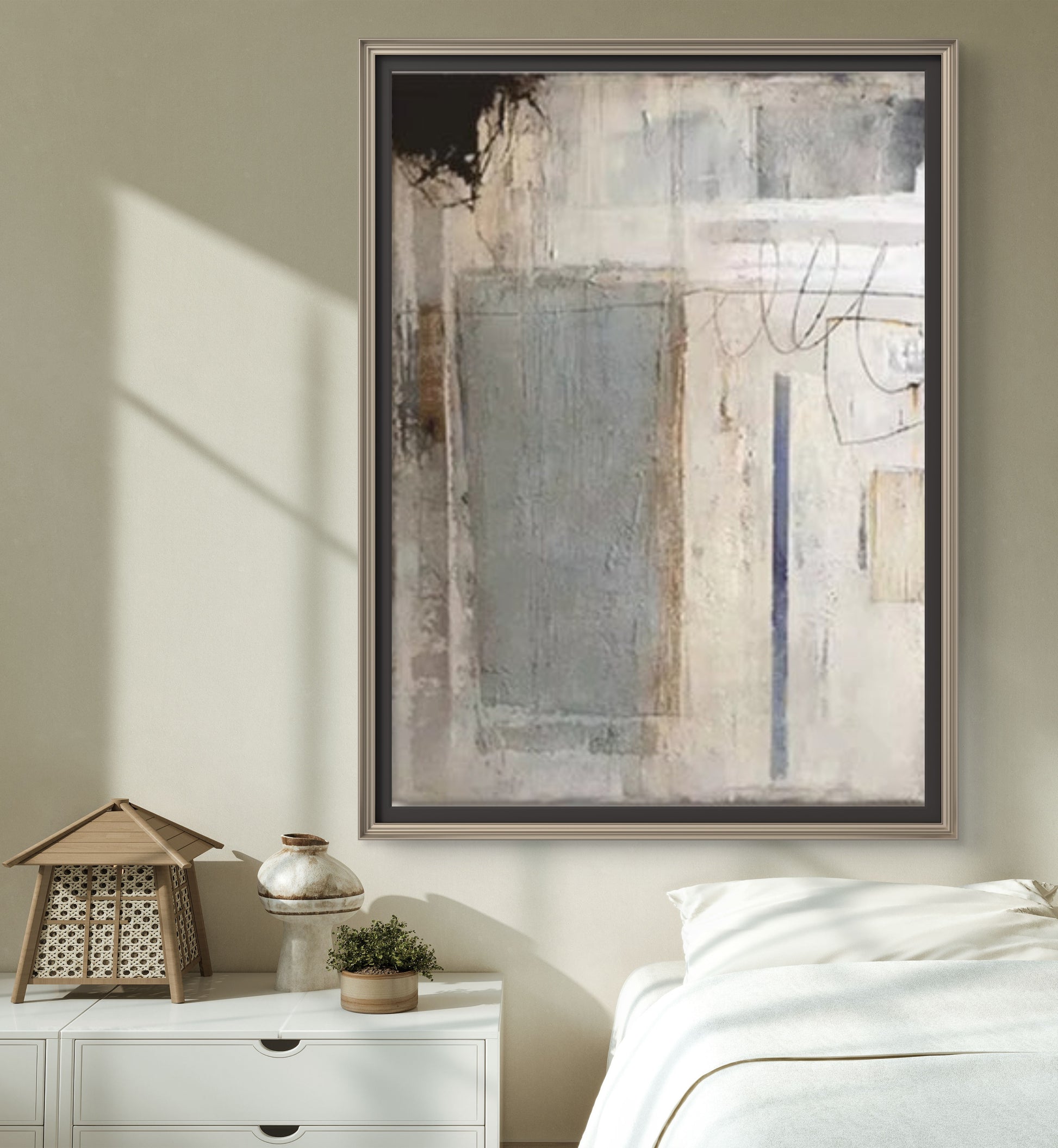 The subtle textures and muted colours create a calming effect, making it a perfect addition to modern or minimalist interiors. Ideal for a living room, bedroom, or any contemplative space, this large wall art piece adds depth and sophistication without overwhelming. It’s a timeless choice for those who appreciate understated elegance and tranquil décor.