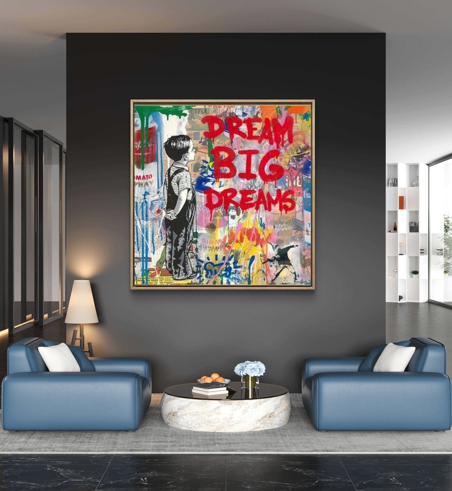 Pop art original acrylic oil painting on canvas - Graffiti painting wall art - Alec Monopoly colourful Paintings - Big Dreams