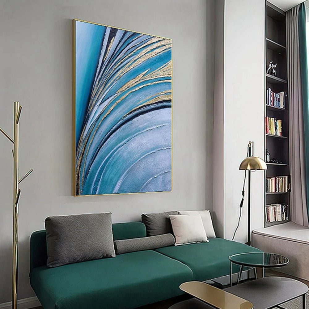 3D Luxury Gold Blue Shade Home Living Wall Art