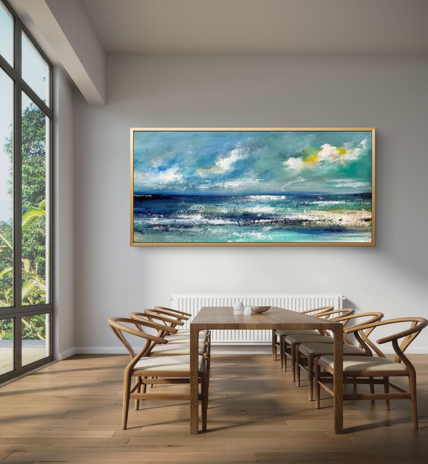 Celebrate the mesmerising allure of the ocean with this exquisite 100% hand-painted abstract contemporary artwork of "Silent Sea." Skillfully crafted by a talented artist, this textured painting captures the essence of the sea in a unique and captivating manner. The artist has masterfully blended vibrant hues and subtle tones to evoke a sense of tranquillity, inviting viewers to immerse themselves in the serene beauty of the silent sea.