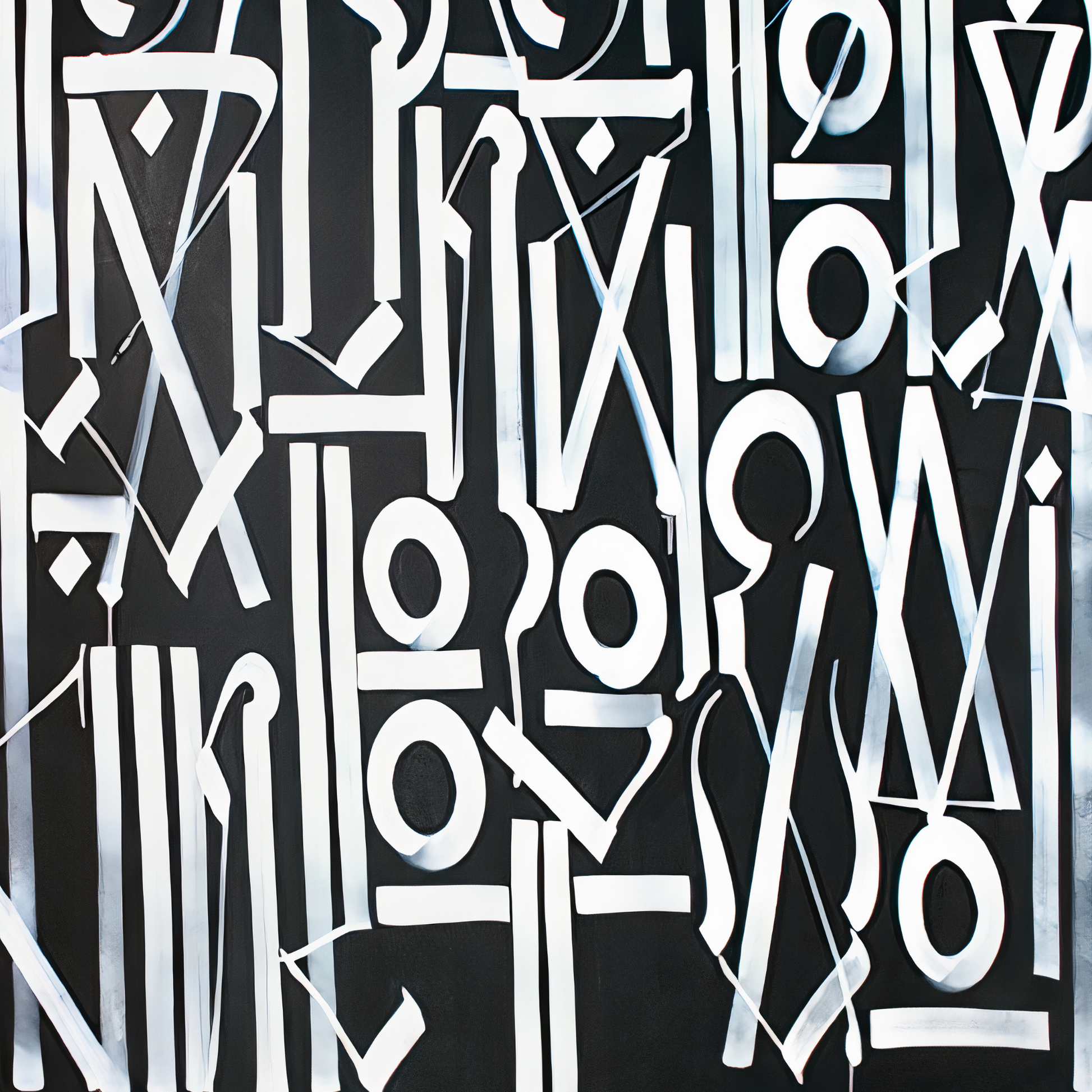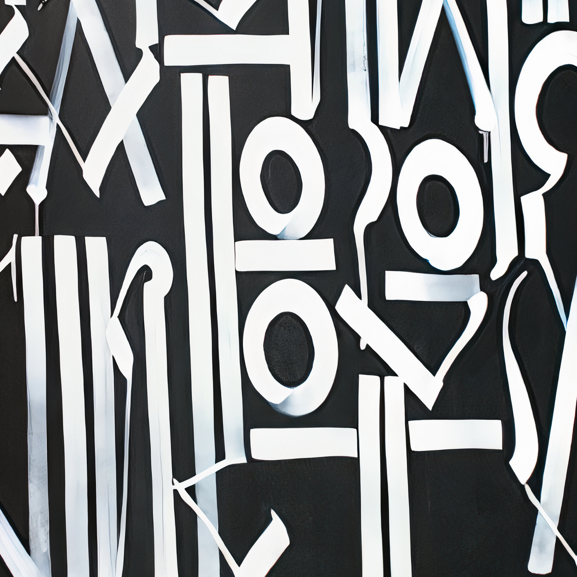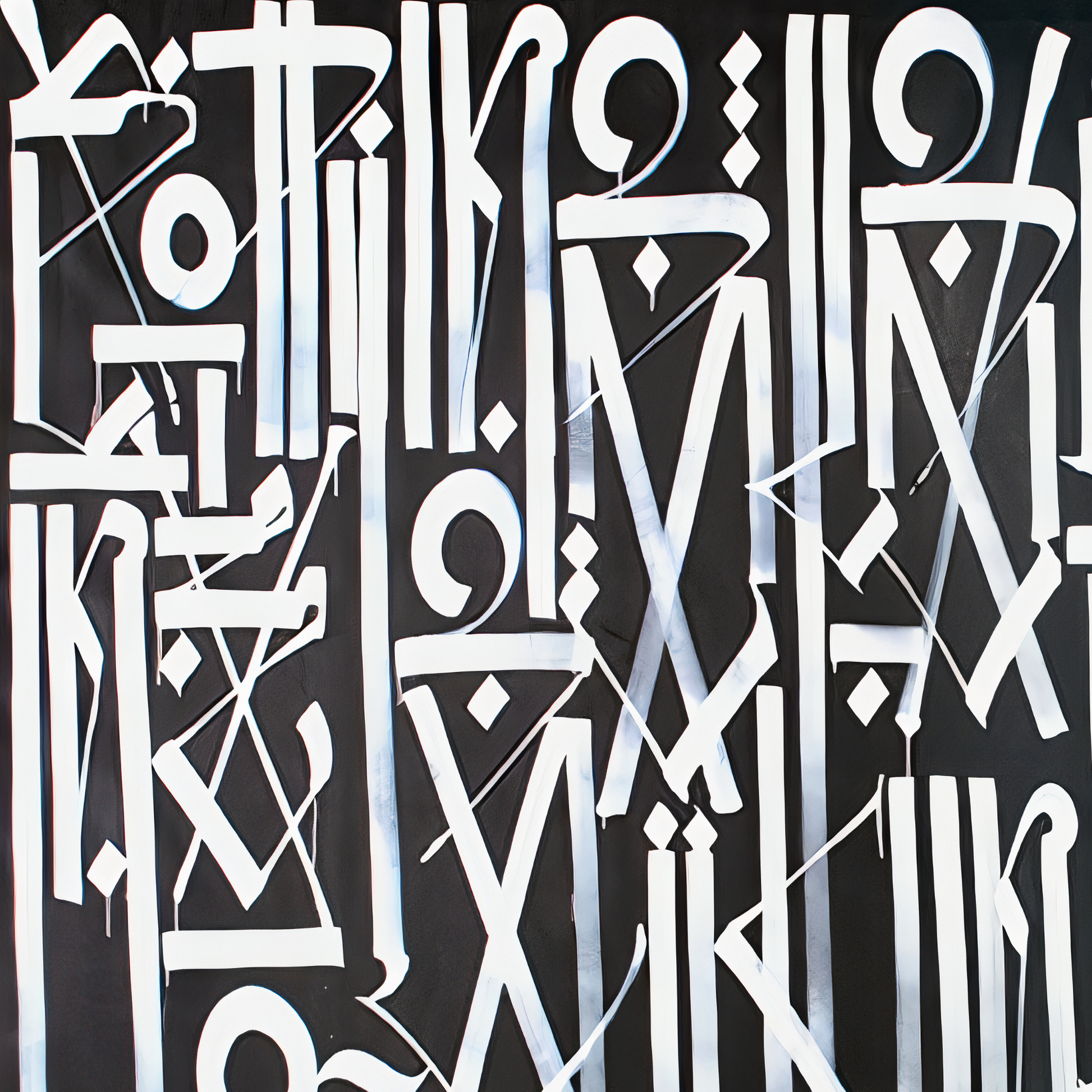 Monochrome drama with graphic precision. This black-and-white RETNA-inspired artwork layers crisp, abstract glyphs over a deep charcoal ground. The rhythmic grid of lines, circles, and bars creates a bold street-meets-gallery aesthetic that anchors modern, minimalist, and industrial interiors. Each canvas is meticulously hand-painted, giving you authentic texture and presence you can’t get from prints.