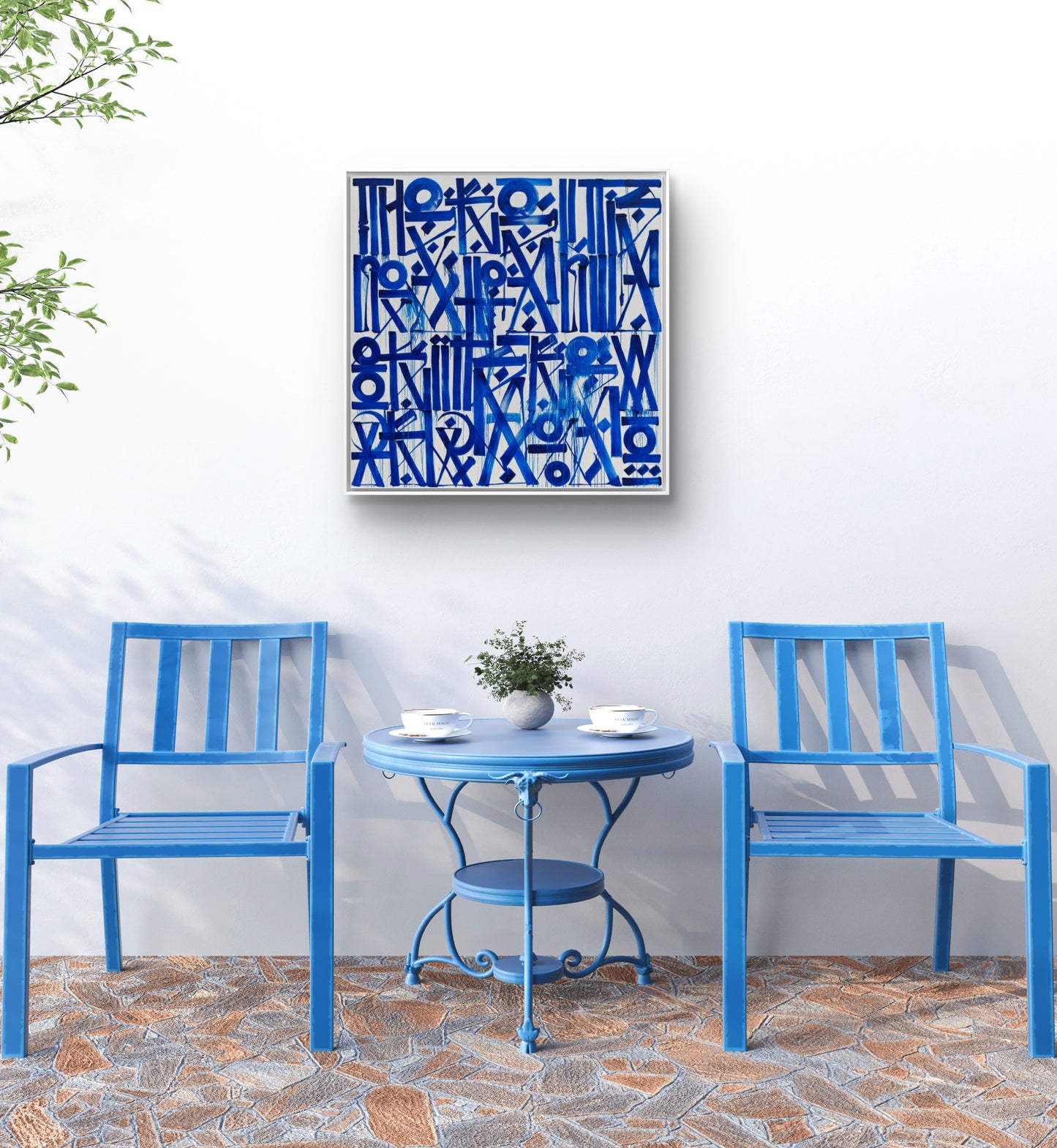 Graffiti White & Blue Cobalt Canvas – Retna Style Square Painting, Hand-Painted