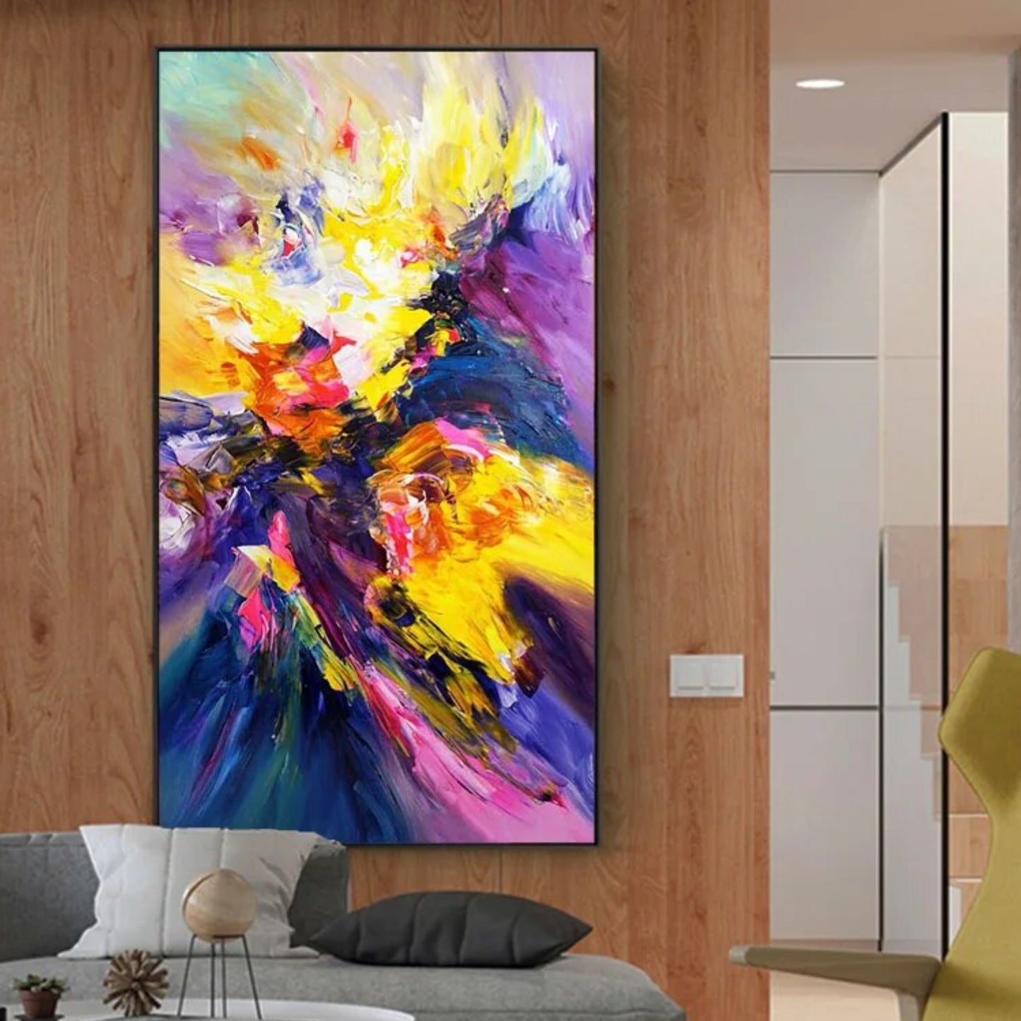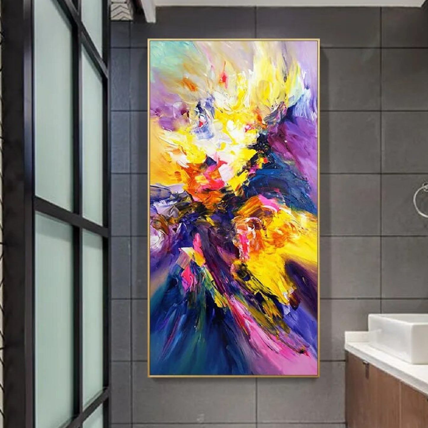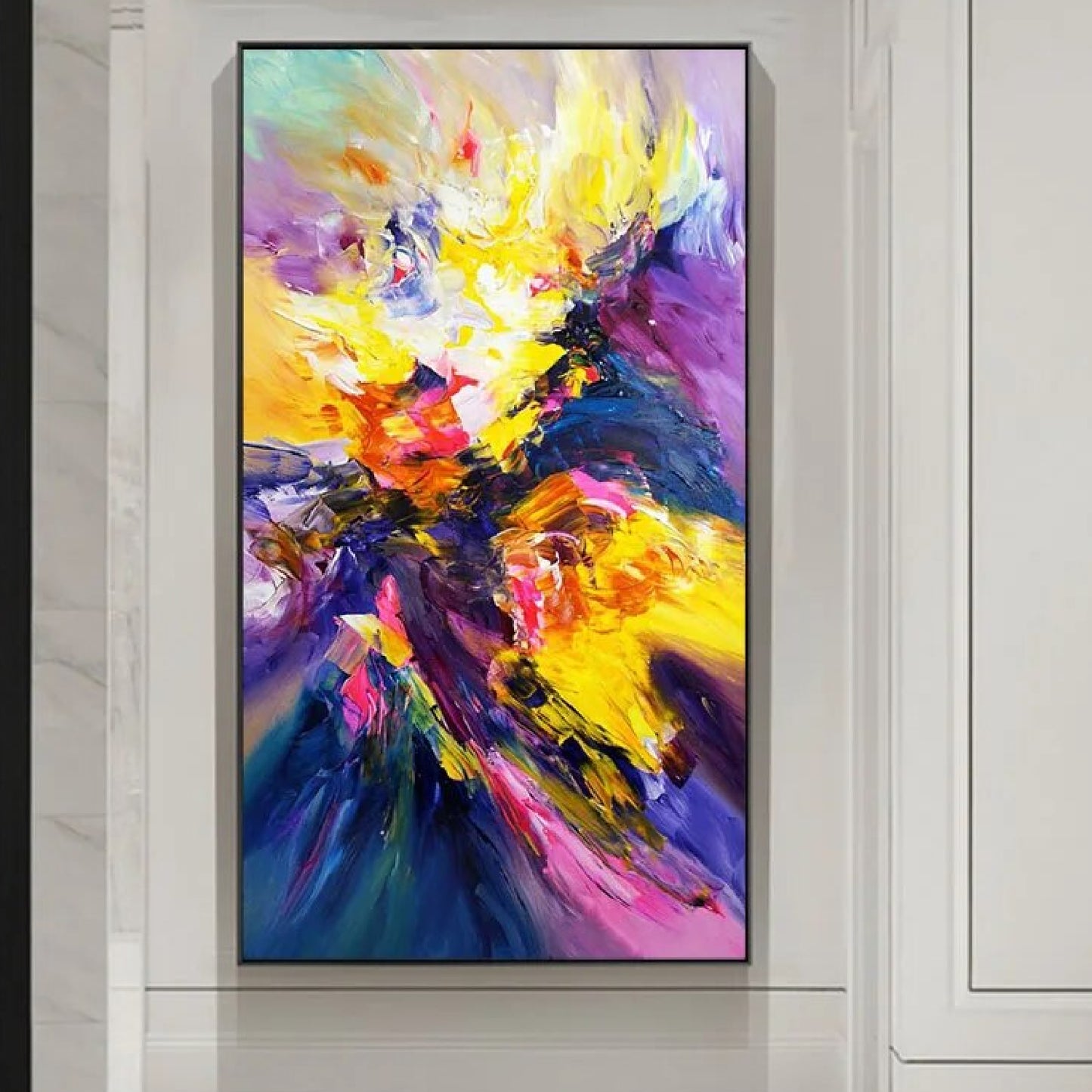 Dive into the vibrant world of 'Large Abstract Energetic Rich Palette Expression Art,' a dynamic masterpiece that pulsates with energy and captivates the senses. This oversized artwork boasts a rich and diverse palette, skillfully blended to create a visually striking and emotionally charged composition. The artist's expressive brushstrokes and bold use of colour converge to form a captivating dance of hues, bringing the canvas to life.