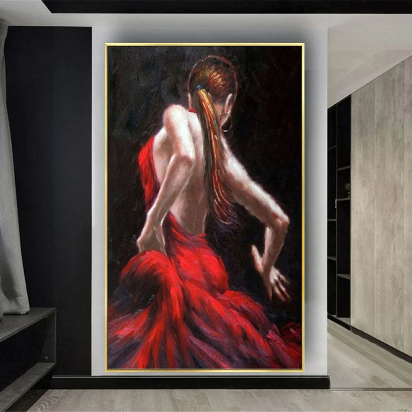 Modern Red Dress Flamenco Dancer Abstract Painting