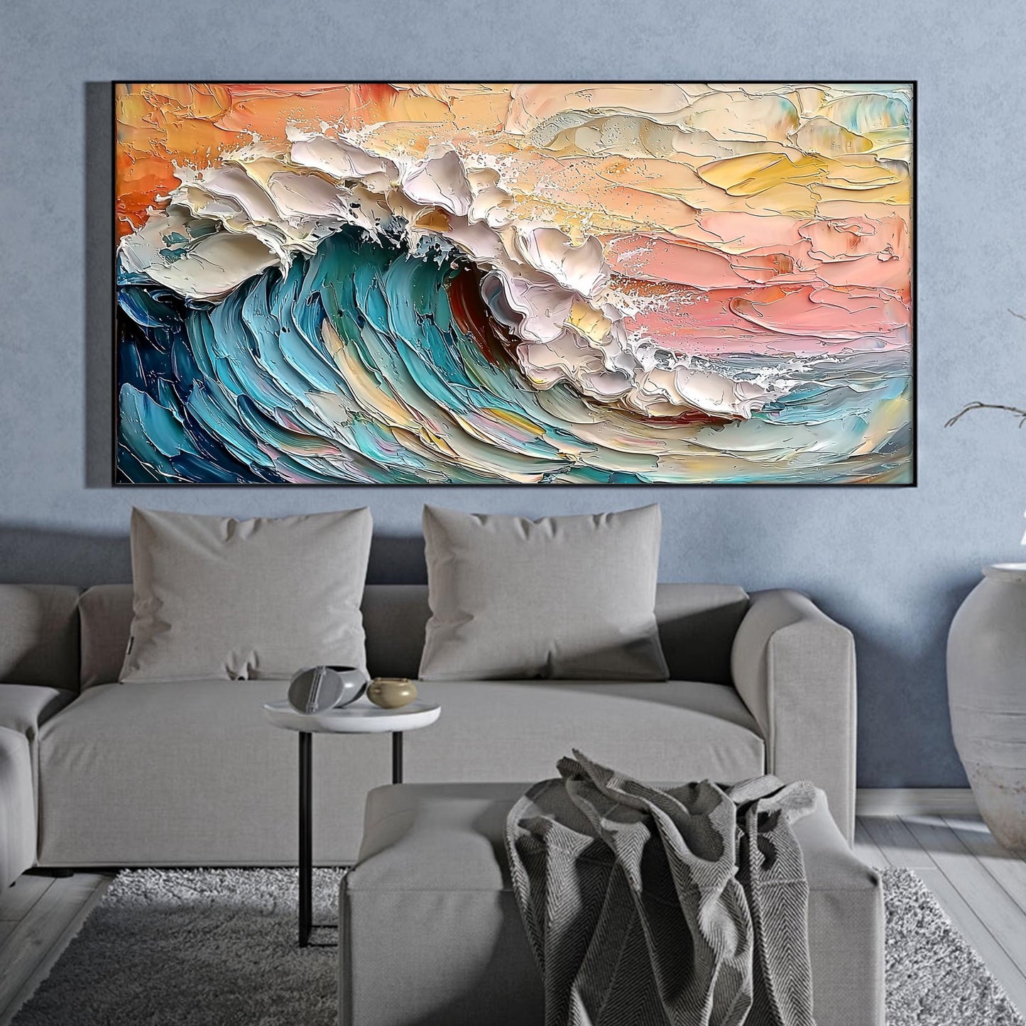 - Type: Hand-Painted 3D Abstract Seascape on Canvas