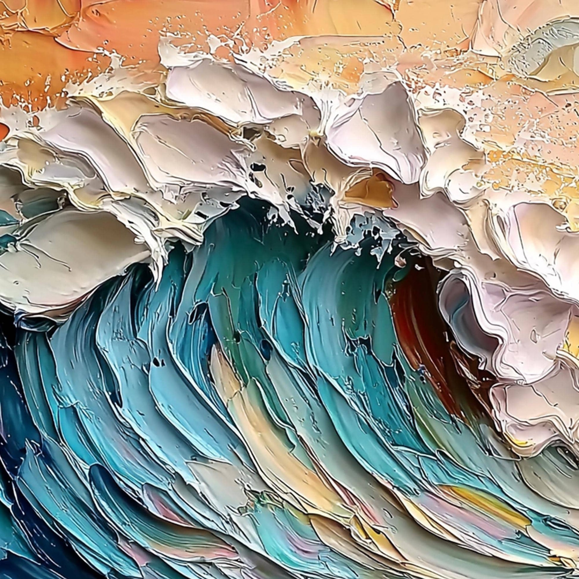 3D Abstract Ocean Wave – Hand-Painted Impasto Seascape Wall Art