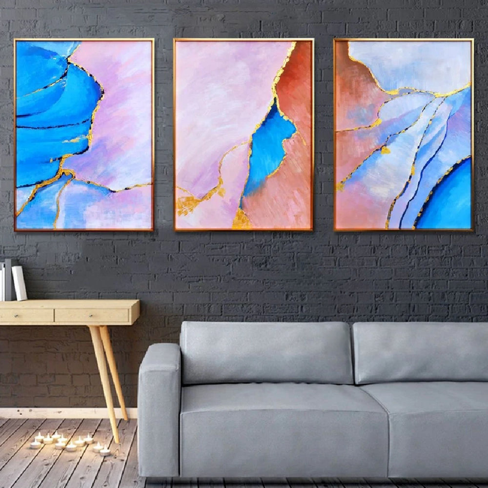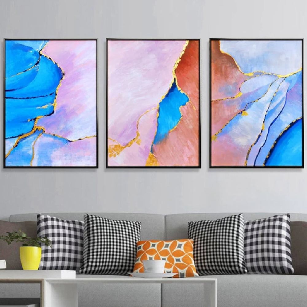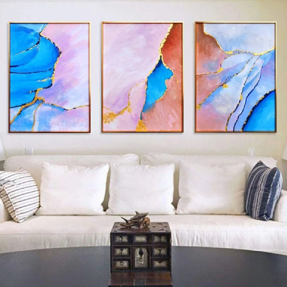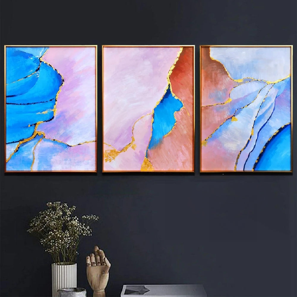Sparkle Dividing Multicolours Set of 3 Abstract Oil Painting