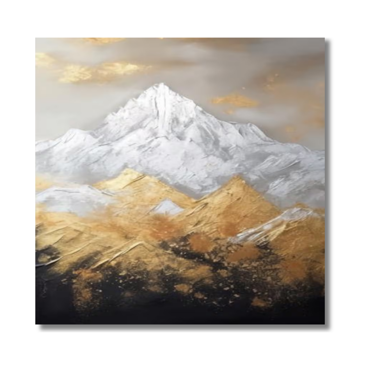 3D Textured Mountain Landscape – Hand-Painted Gold & Snow Impasto Wall Art