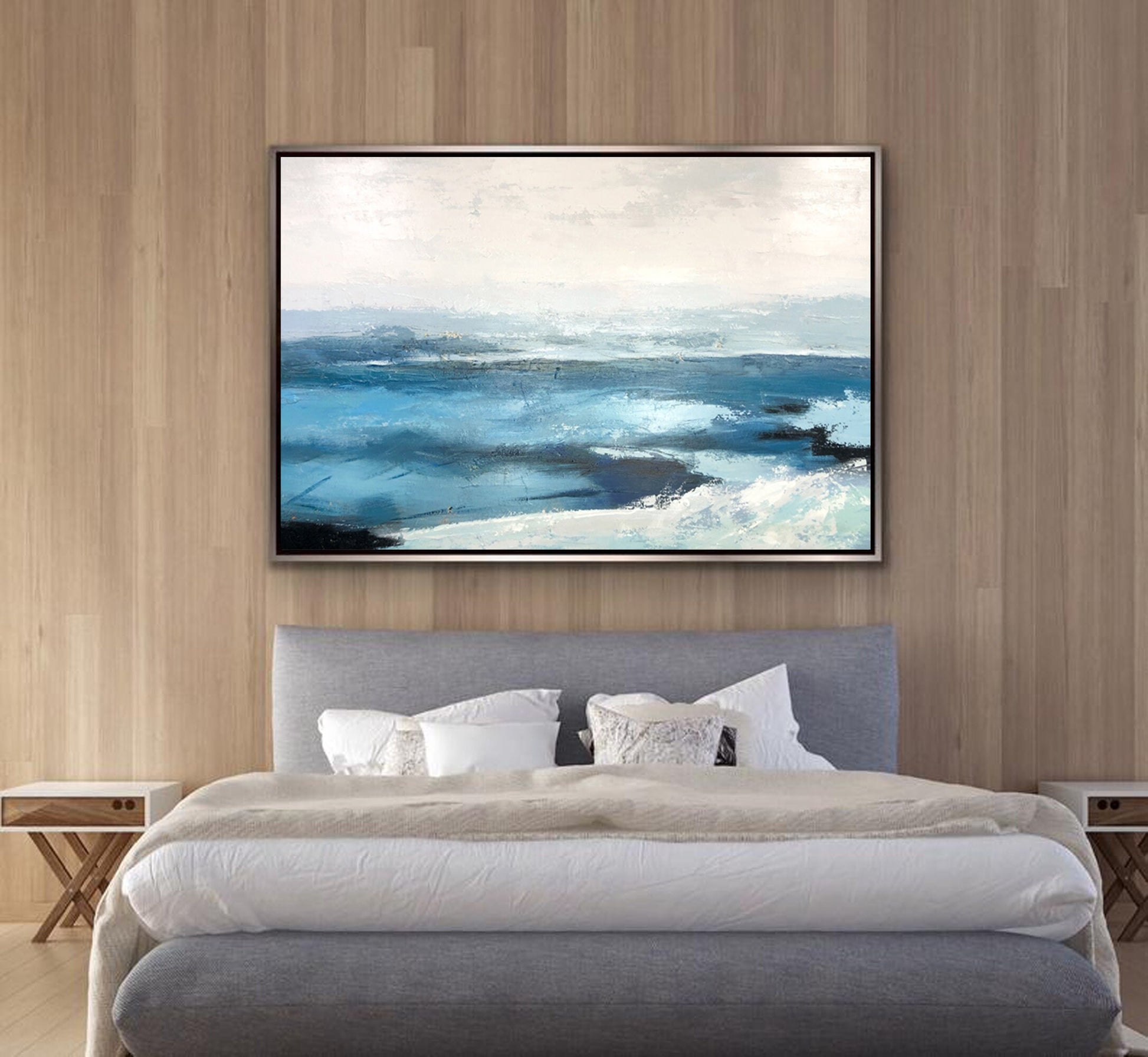 Abstract Blue Seascape Painting – Textured Ocean Wall Art on Canvas
