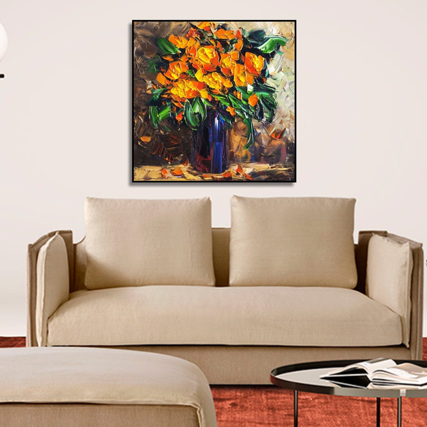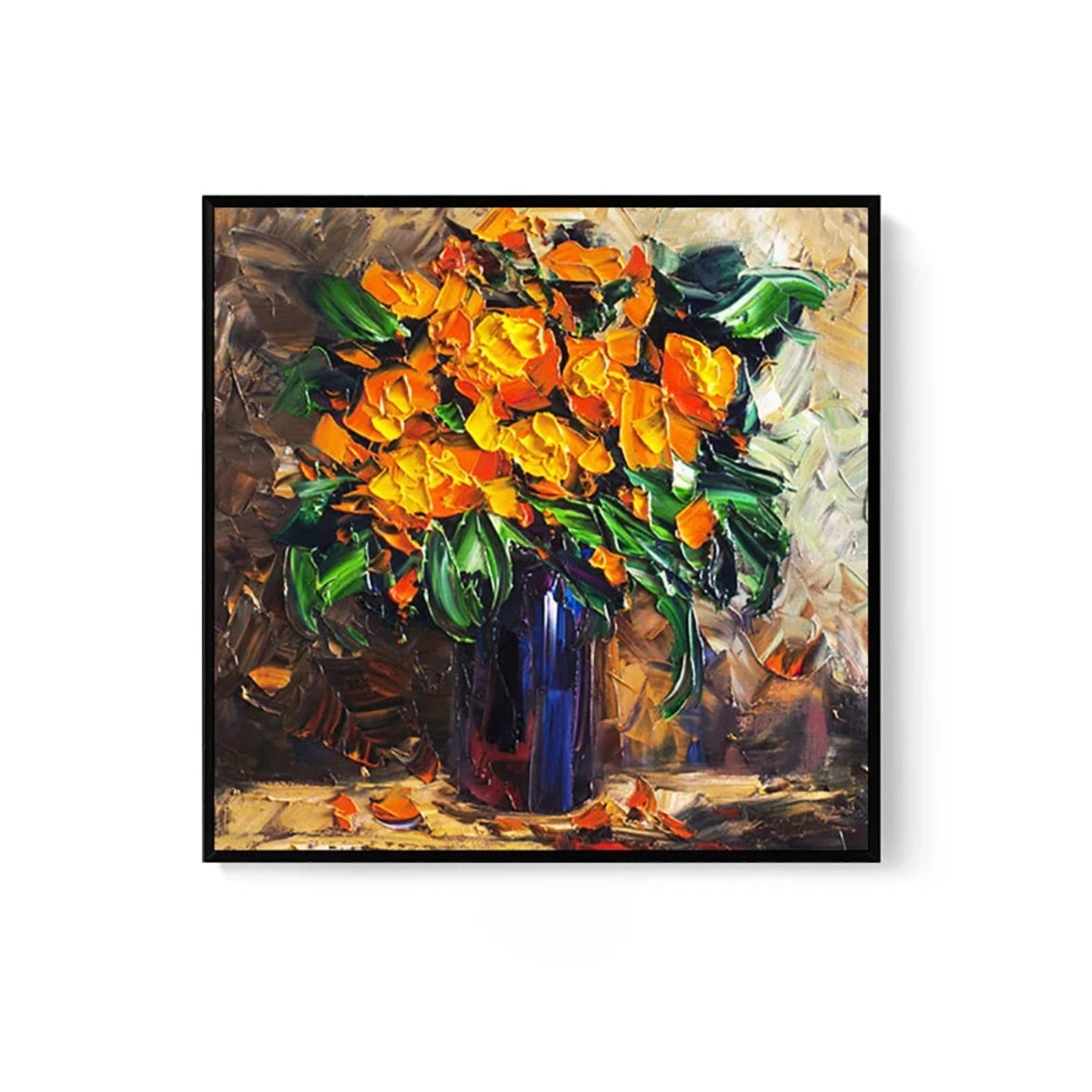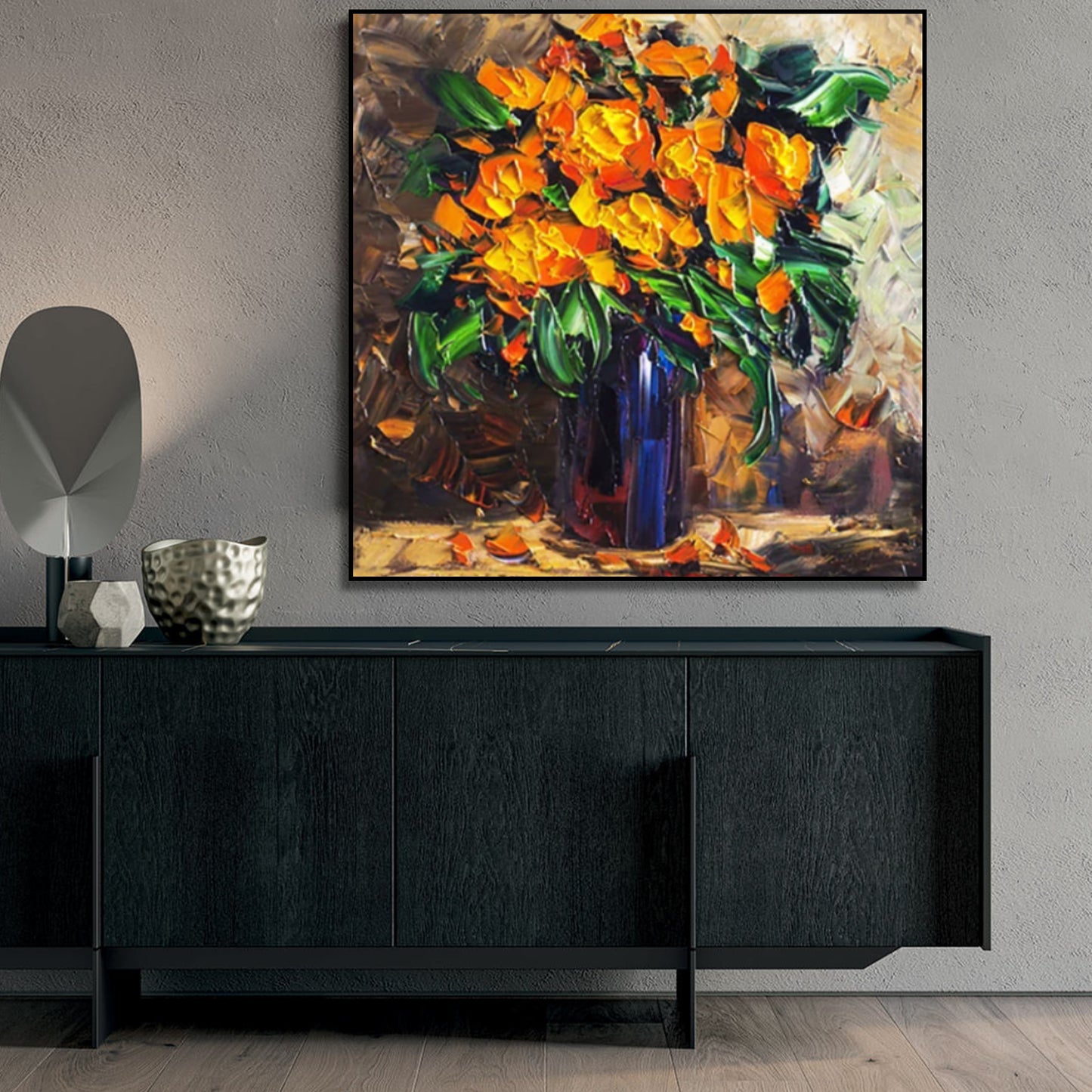 Introducing our Vivid Orange Flower Vase Textured Nordic Style Painting, a captivating blend of vibrant hues and minimalist charm. Inspired by the clean lines and natural beauty of Nordic design, this artwork features a striking juxtaposition of vivid orange flowers against a backdrop of serene simplicity. Each brushstroke is imbued with a sense of fluidity and depth, creating a tactile experience that draws you into the heart of the composition. Let the warmth of orange blossoms infuse your space with energy and vitality, while the understated elegance of Nordic style adds a touch of timeless sophistication. Elevate your surroundings with this unique fusion of colour and texture, and let its vibrant presence breathe new life into your home.