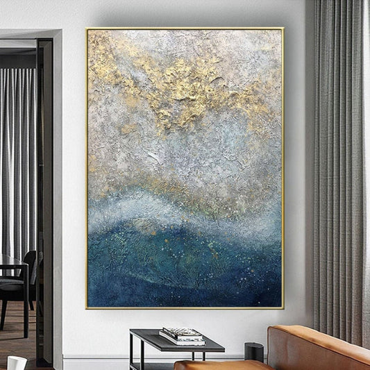 Modern Gold Foil Cloud 100% Hand Painted Wall Art