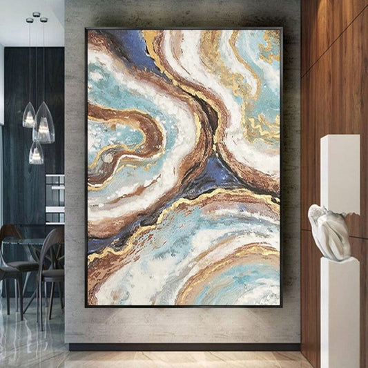Abstract Gold Foil Fluid Hand Painted Wall Artwork