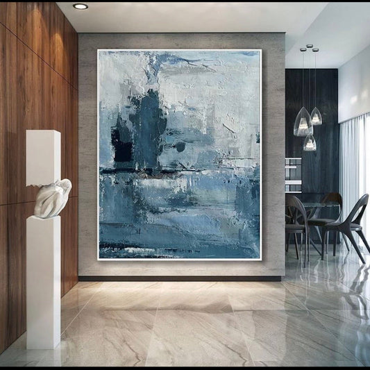 Minimalist Blue 100% Hand Painted Textured Artwork