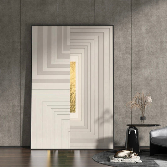 Abstract Gold Grey Crossroads 3D Textured Painting