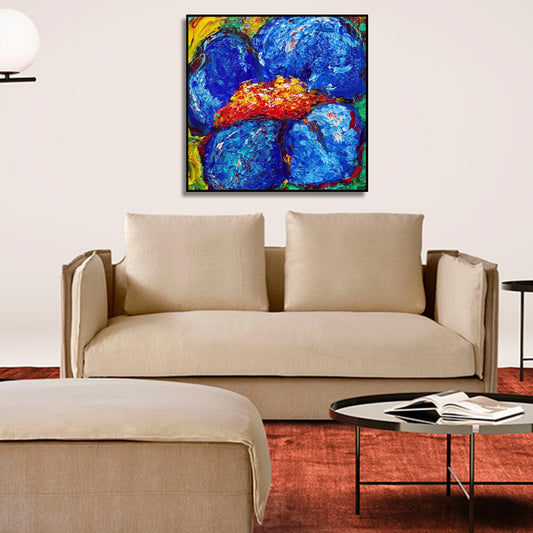 Abstract Blue Flower Heavy Textured Blossom Oil Painting