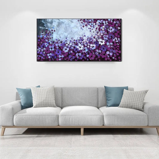 Abstract Violet Flowers 100% Hand Painted Wall Art
