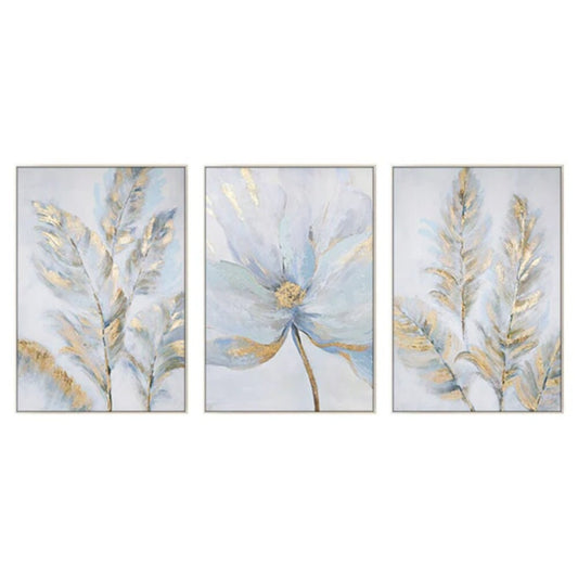 Abstract Blue 100% Hand Painted 3-Panel Floral Art