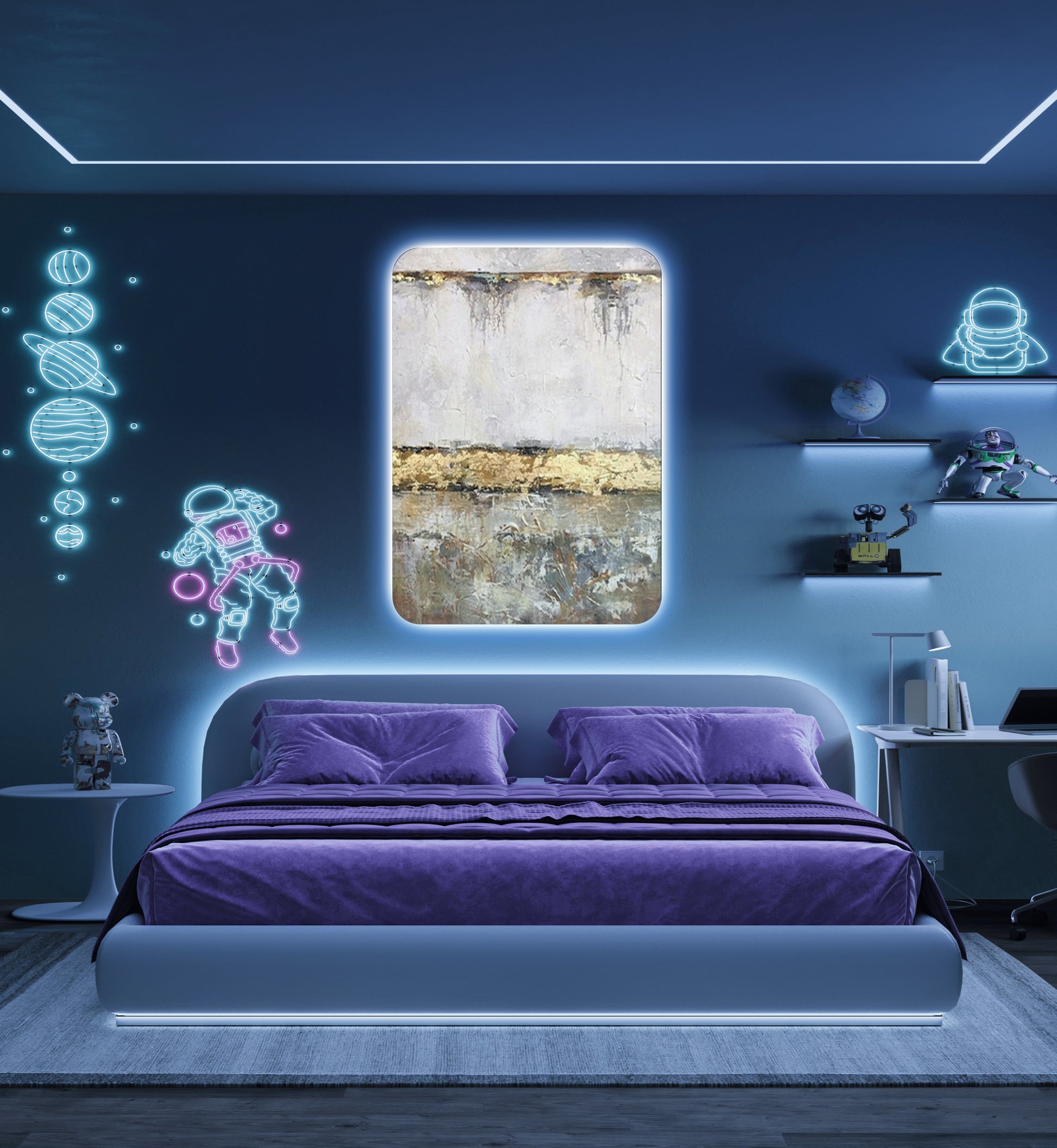 Every painting can be customised in size, colour palette, and texture to match your interior perfectly. We can also add metallic accents, subtle glitter, or unique embedded details upon request.