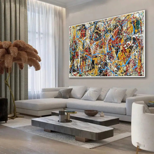 Bring bold abstract expressionism into your space with our Jackson Pollock-style paintings. Each artwork is hand-painted by skilled artists using the iconic drip technique, making every canvas a one-of-a-kind statement piece.