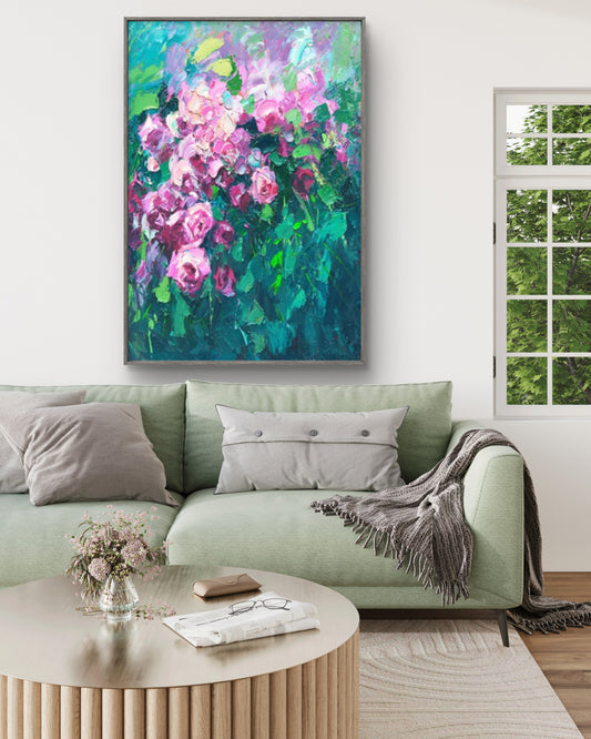 Impressionist Pink Roses Textured Floral Painting