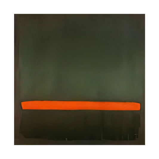 Modern Hand-Painted Rothko-Style Oil Painting in Dark Green and Vivid Orange