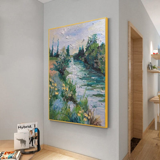 Beautiful River Side 100% Hand Painted Wall Decor