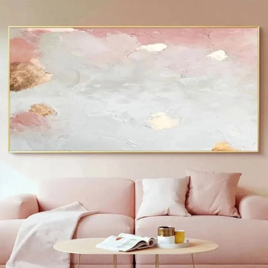 Whispers of Dawn – Soft Blush and Gold Hand-Painted Abstract Canvas