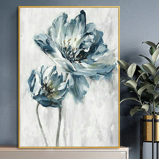 Nordic Bloom – Monochrome Floral Canvas Painting in Grey & White