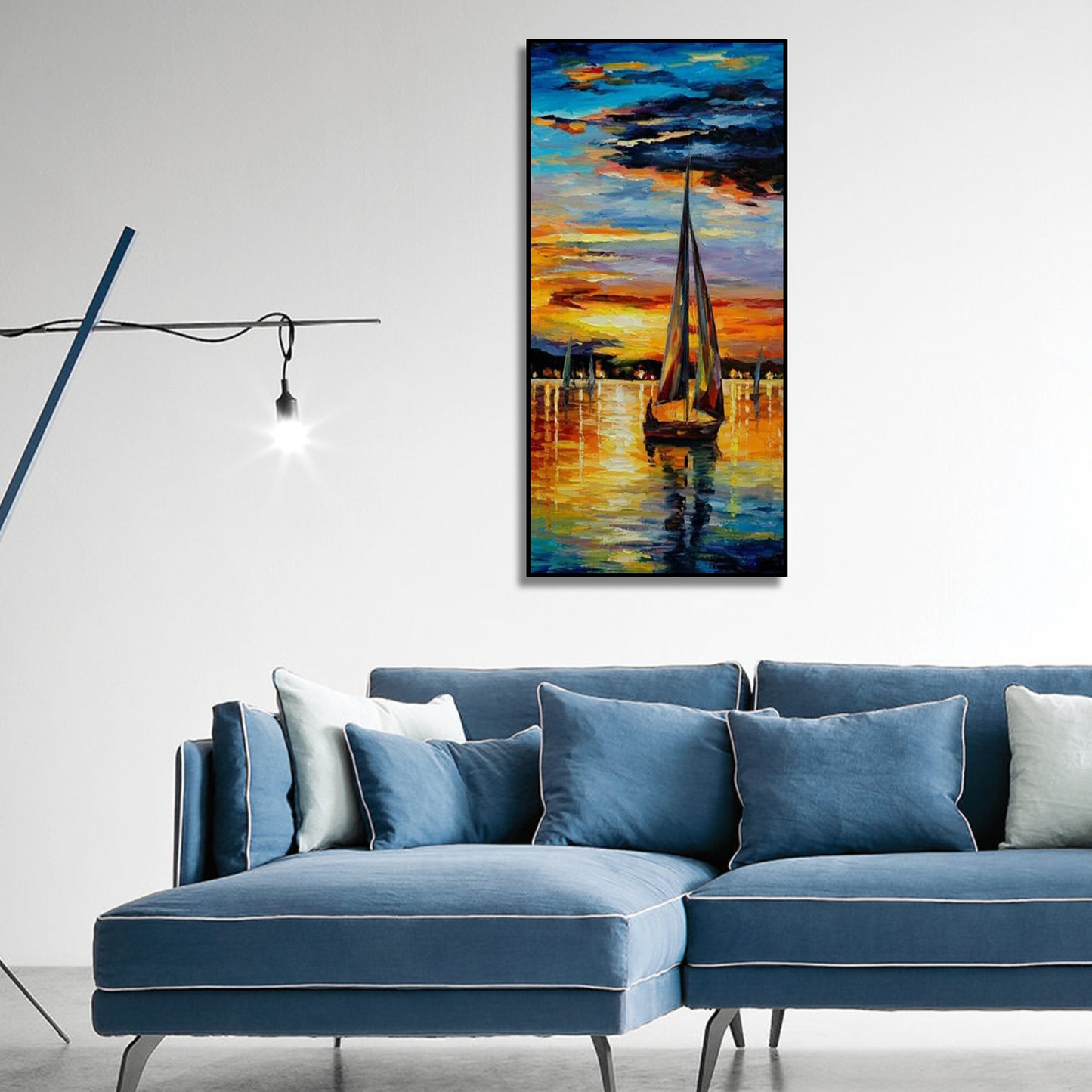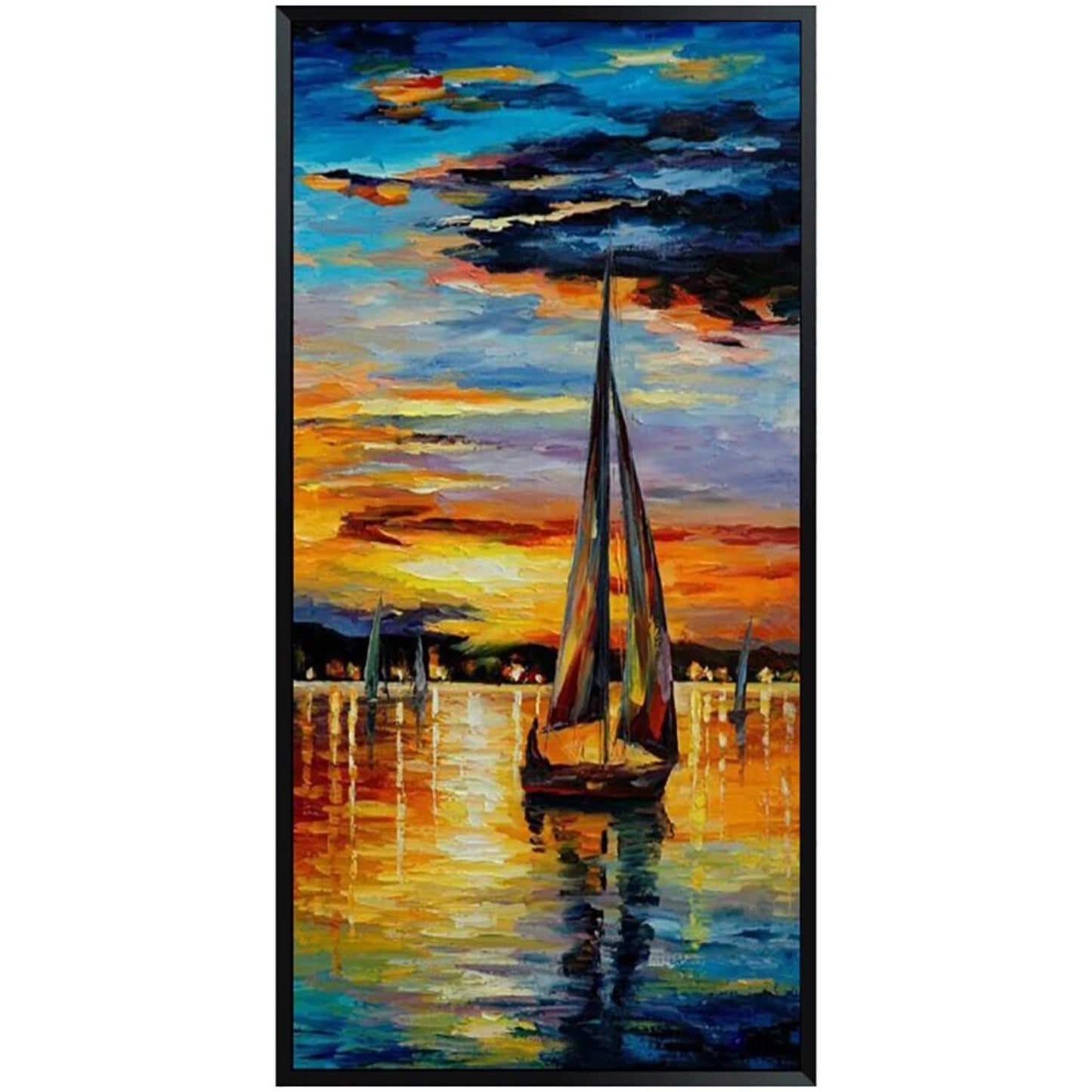 Introducing our Nautical Sunset Sailboat Seascape Canvas Wall Art Painting, a stunning portrayal of serene maritime beauty that will transport you to the tranquil shores with every glance. Crafted with meticulous attention to detail, this captivating piece captures the essence of a blissful sunset sail on the open seas. Immerse yourself in the warm hues of the setting sun as it kisses the horizon, casting a golden glow over the tranquil waters.