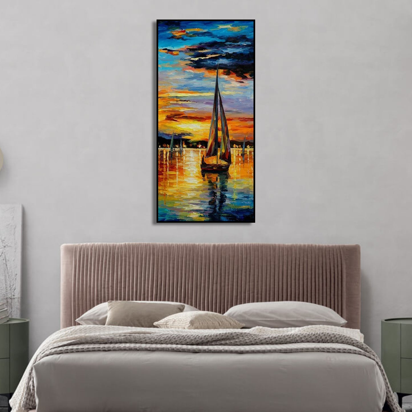 Nautical Sunset Sailboat Seascape Canvas Wall Art Painting