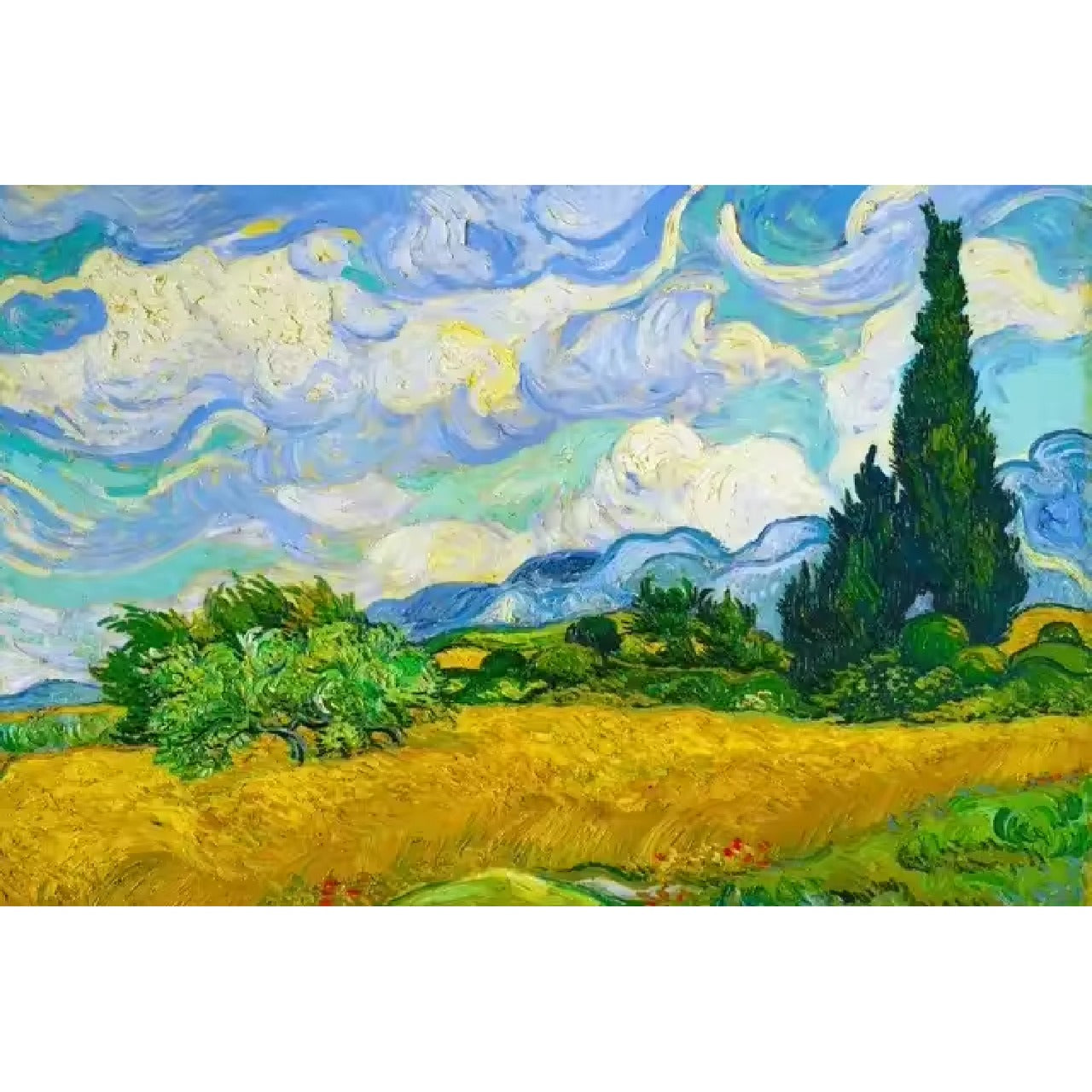- Hand-painted artwork inspired by Vincent van Gogh’s Wheat Field with Cypresses